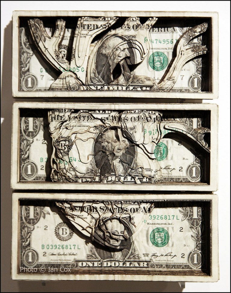 Mexico’s Vice Gallery pissed off artist Scott Campbell so much that the artist hauled his entire solo show out onto the sidewalk and proceeded to burn his pieces. Not only was the work laser-cut from stacks of bills, but also sold-out completely. Double burn. The NYC tattooist-turned-artist reportedly was unhappy with Vice’s execution of his show. The gallery owners weren’t too forthcoming with Campbell… so he lit it up.