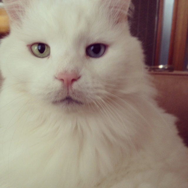 1. Q-tip has mismatched eyes, which is one of the many things which make her unique. She’s probably trying to tell us that she’s hungry or tired!