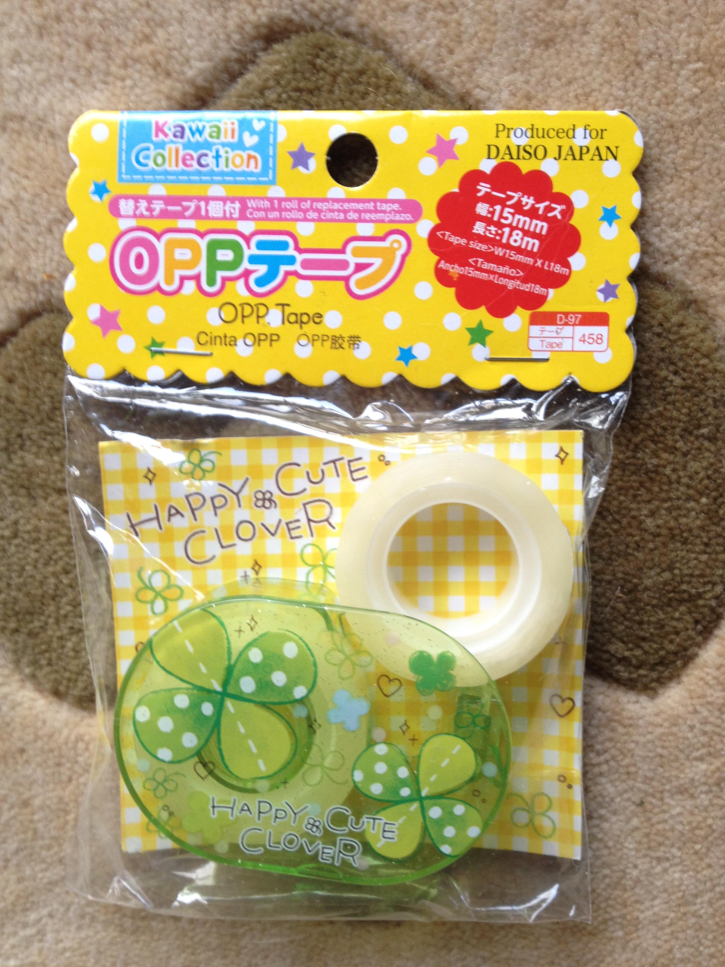 April 17, 2012April 17, 2012 Happy cute clover tape I love the Japanese $1.50 store. share the love: Click to email a link to a friend (Opens in new window) Email Click to share on Facebook (Opens in new window) Facebook Click to share on Tumblr (Opens in new window) Tumblr Click to share on X (Opens in new window) X Click to share on Pinterest (Opens in new window) Pinterest Like Loading... Related