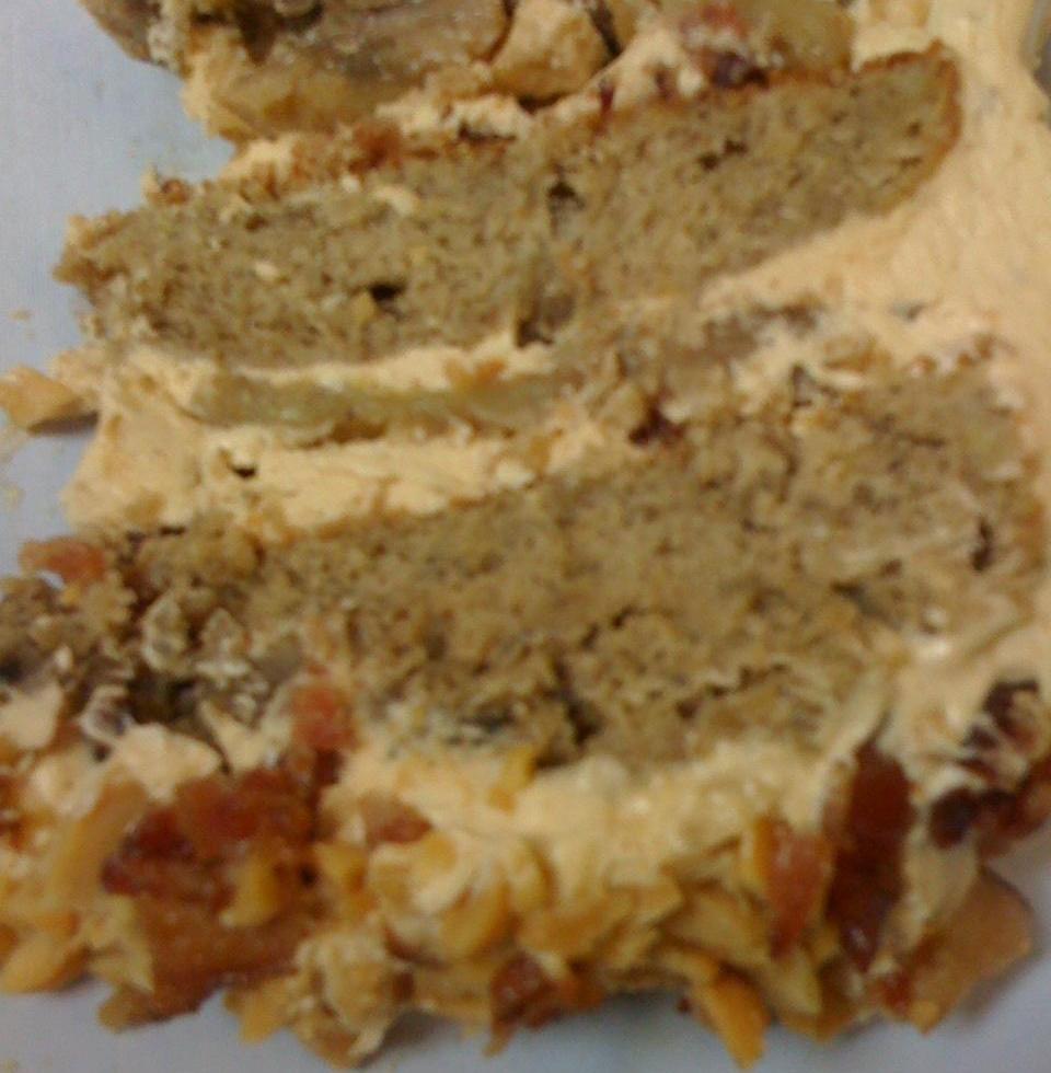 Banana bacon cake with peanutbutter frosting
